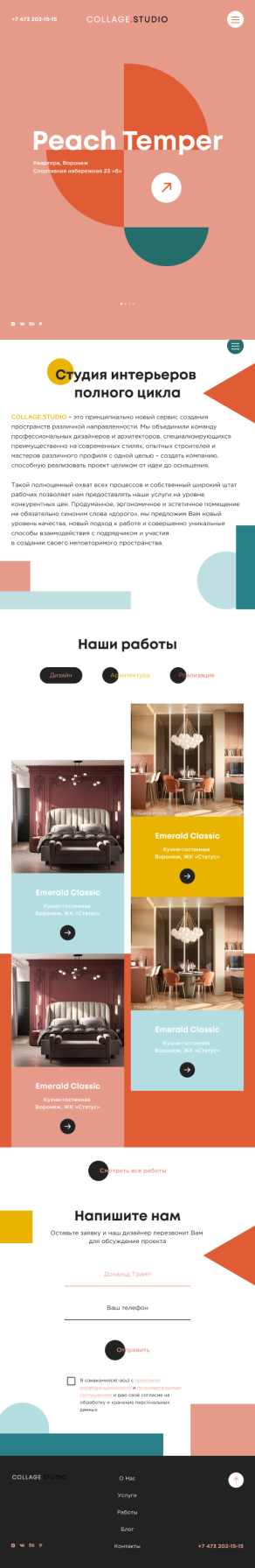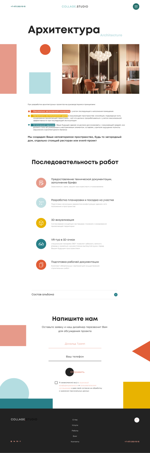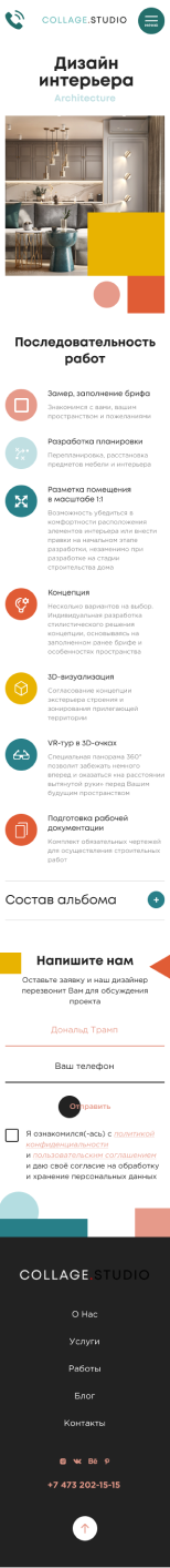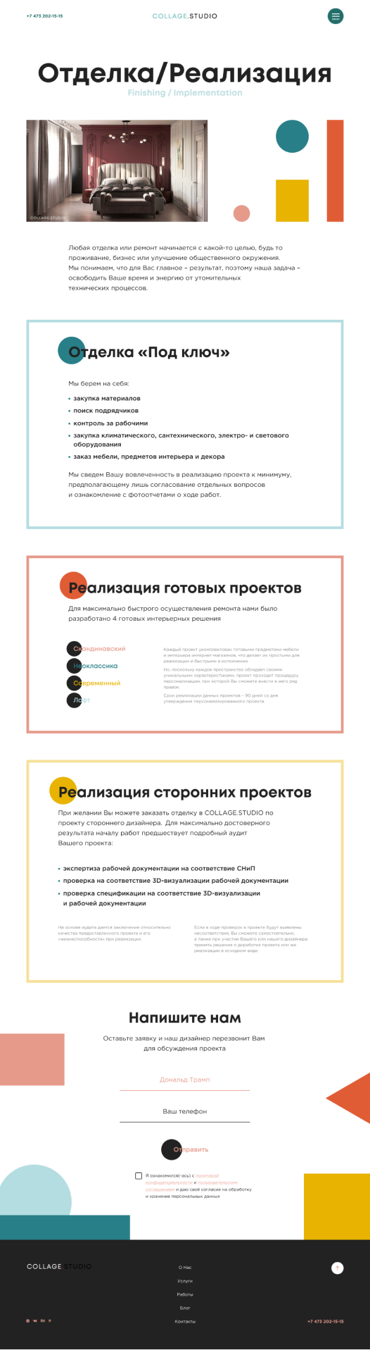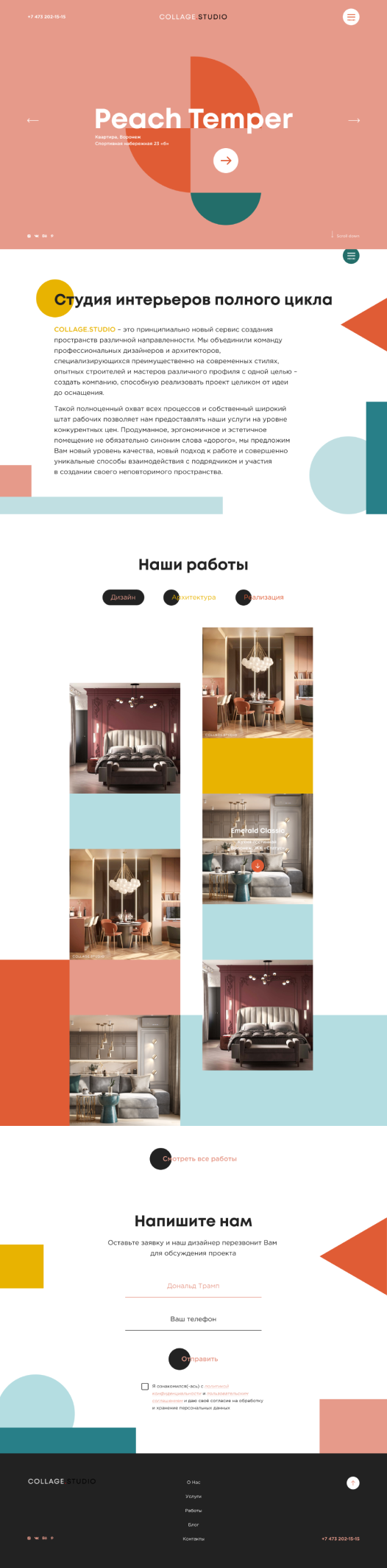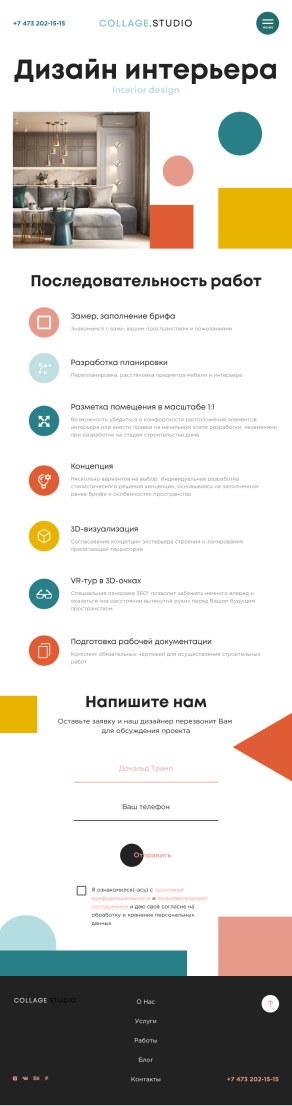 Обновление имиджевого сайта для студии по дизайну интерьеров из Воронежа. Студия делает интересные решения в интерьере для квартир, домов и офисных пространств.