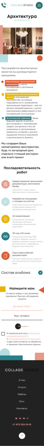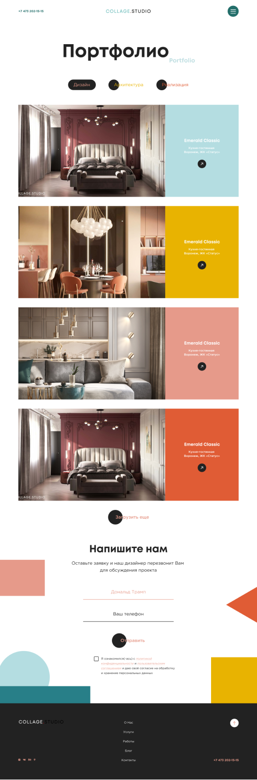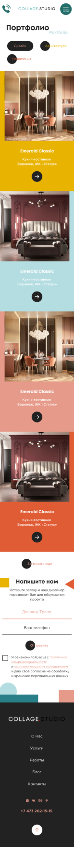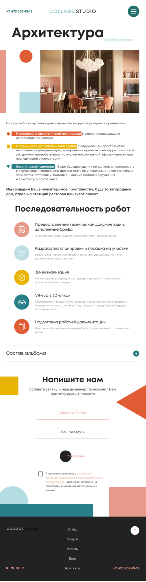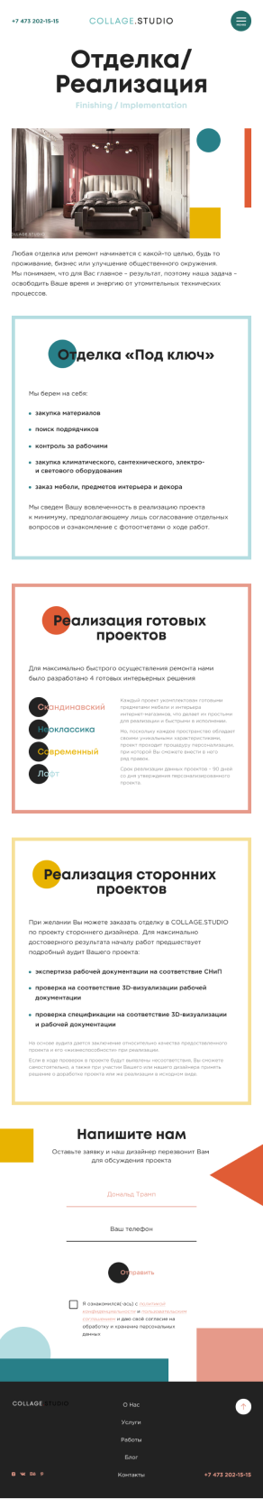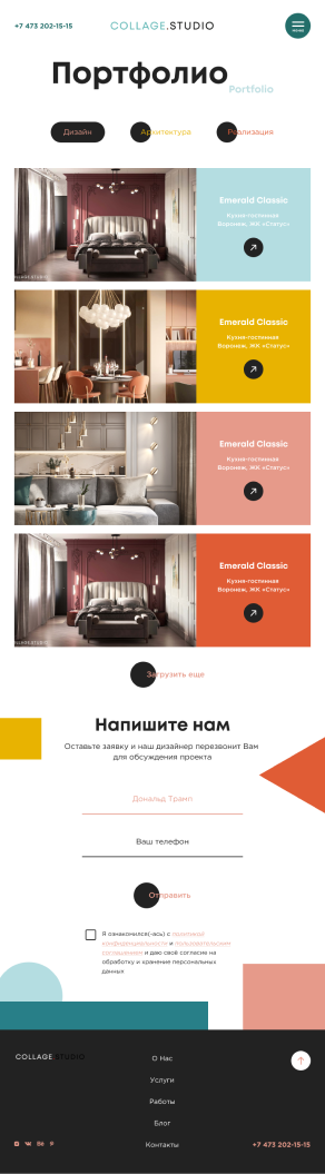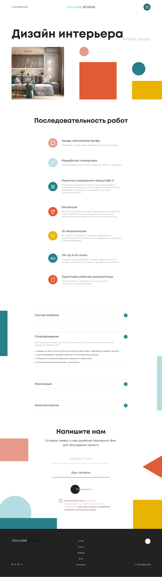 Обновление имиджевого сайта для студии по дизайну интерьеров из Воронежа. Студия делает интересные решения в интерьере для квартир, домов и офисных пространств.