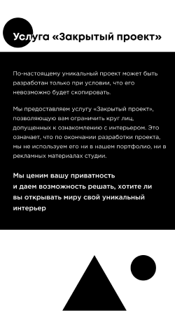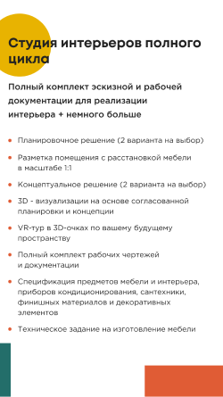 на страницах услуг рассказывается о последовательности работ и условиях предоставления.