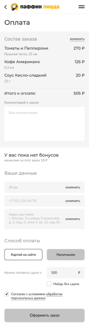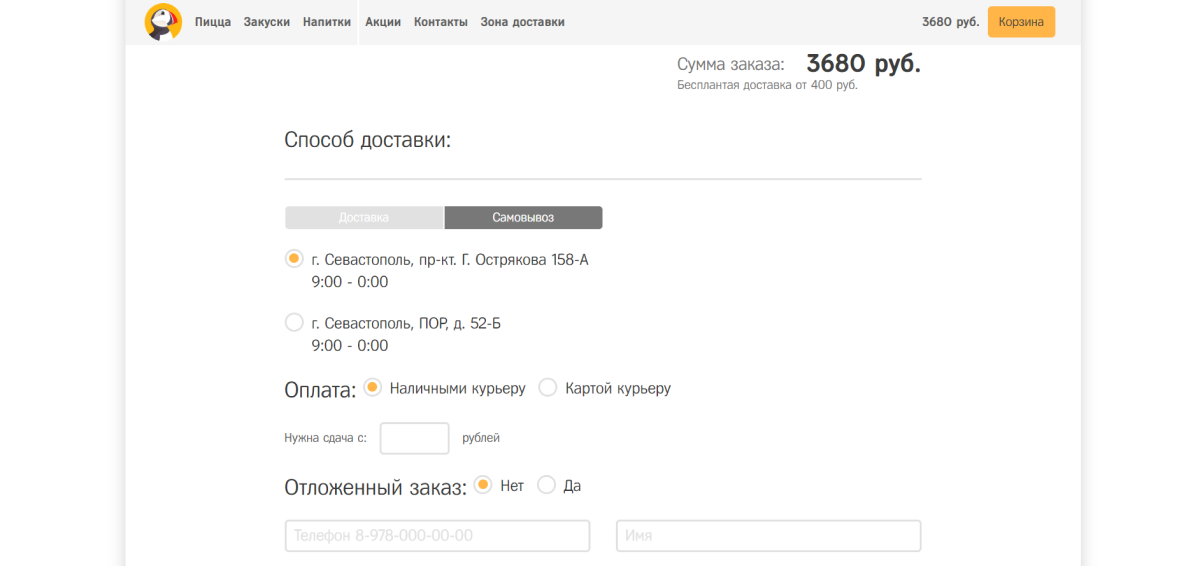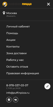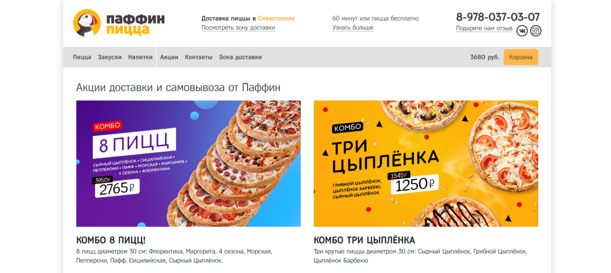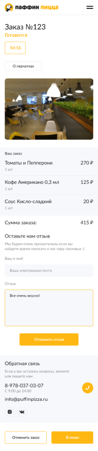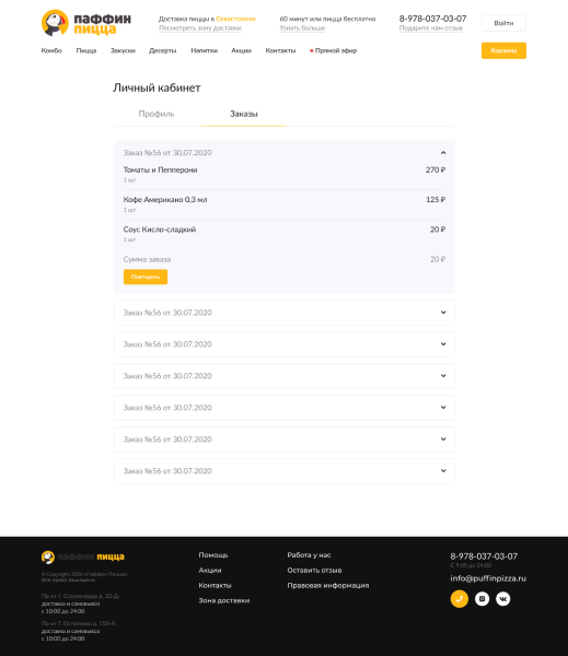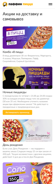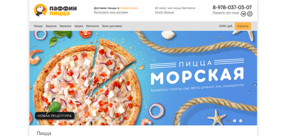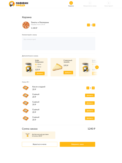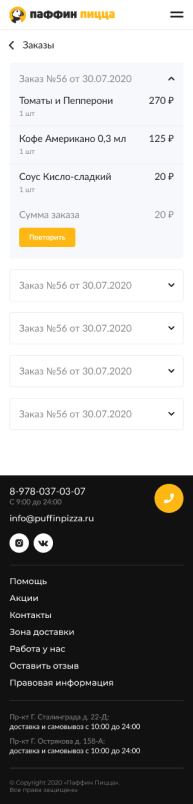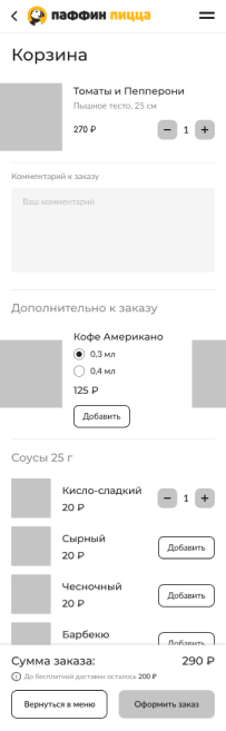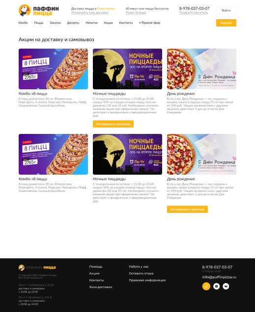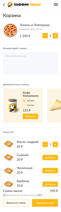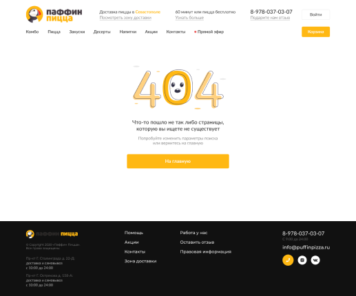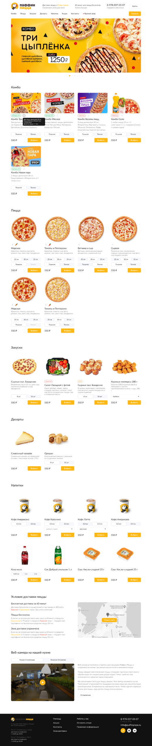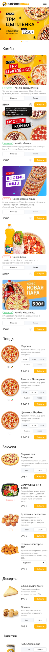 Puffin Pizza — сеть пиццерий в Севастополе. Текущий сайт уже устарел и плохо сказывается на притоке новых клиентов. Клиент пришел с задачей спроектировать удобный сервис для заказа пиццы, который в первую очередь будет удобен пользователям с мобильных устройств.