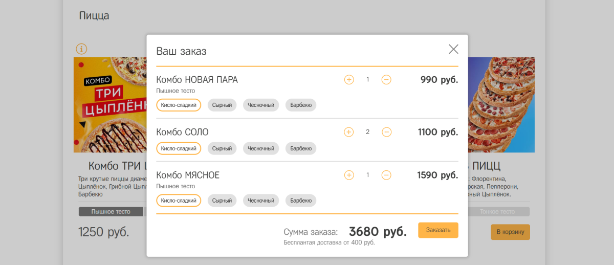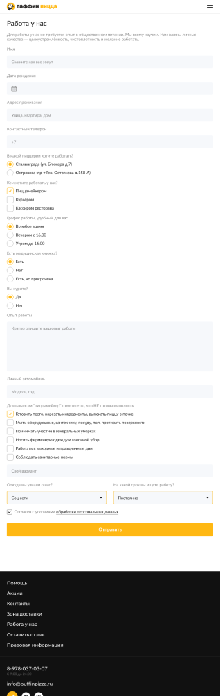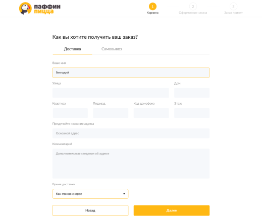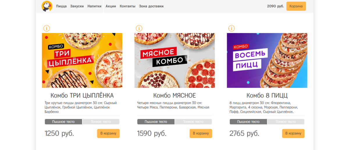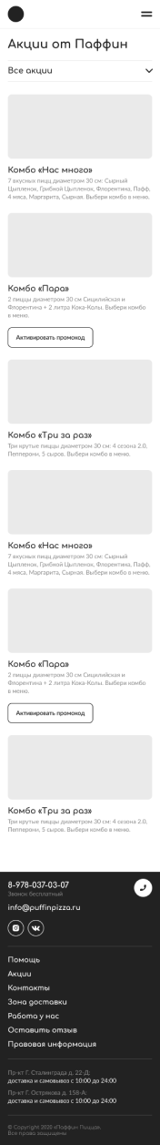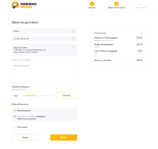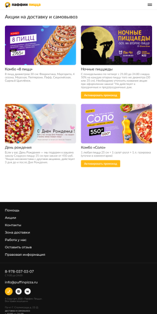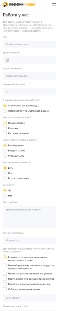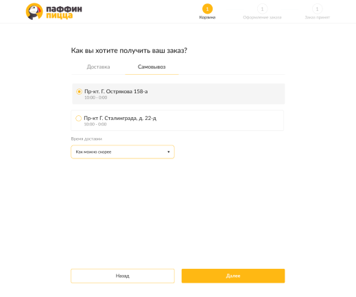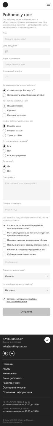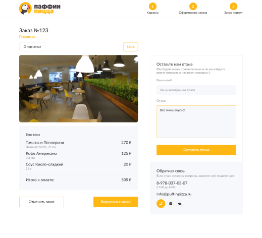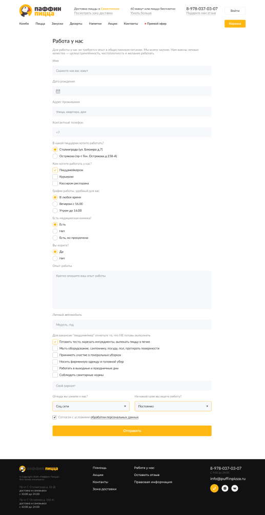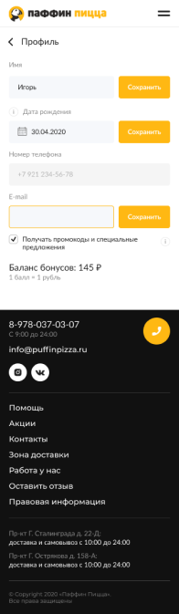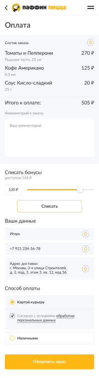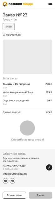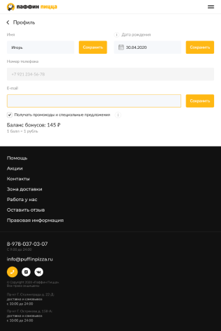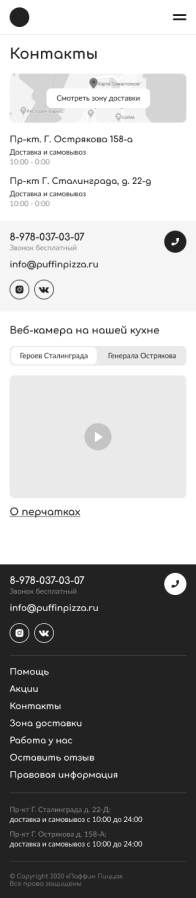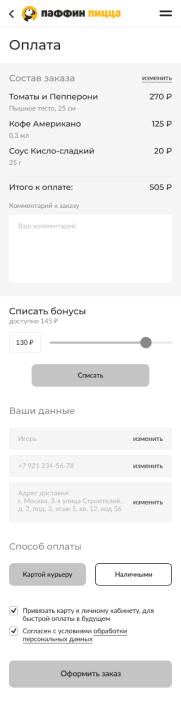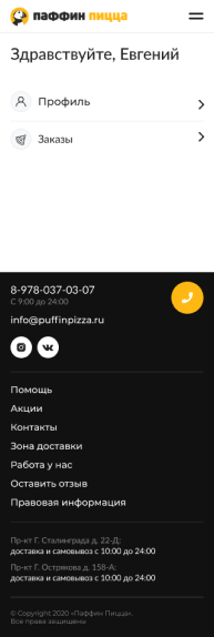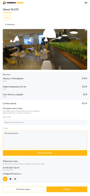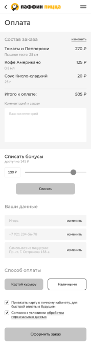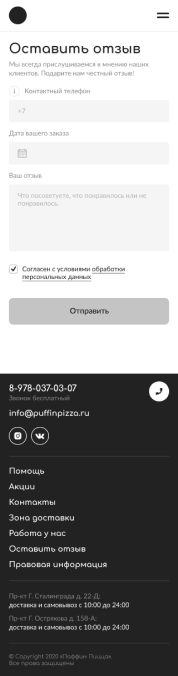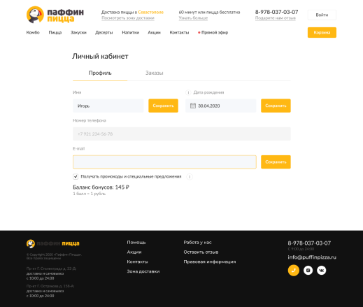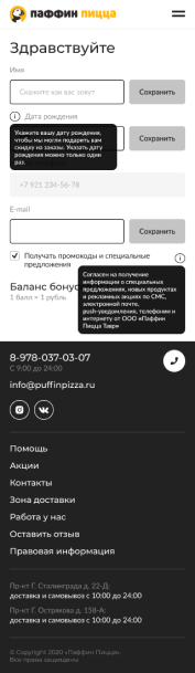 Puffin Pizza — сеть пиццерий в Севастополе. Текущий сайт уже устарел и плохо сказывается на притоке новых клиентов. Клиент пришел с задачей спроектировать удобный сервис для заказа пиццы, который в первую очередь будет удобен пользователям с мобильных устройств.